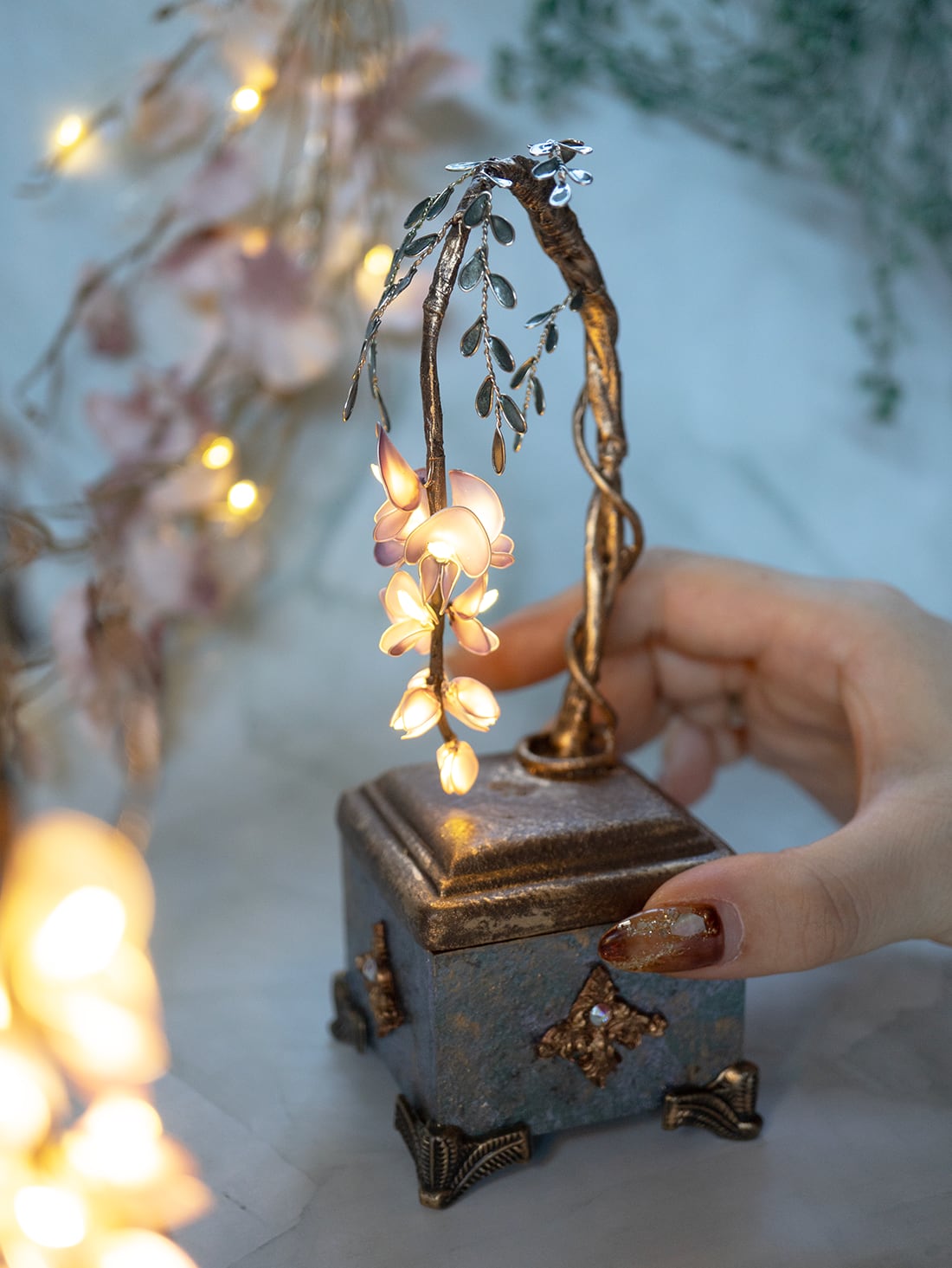 Shikisoumonogatariの作品は1本のワイヤーが織りなす、繊細な表現が多い作品となっております。なので、強い力や衝撃を加えると破損の原因となる場合がございます。